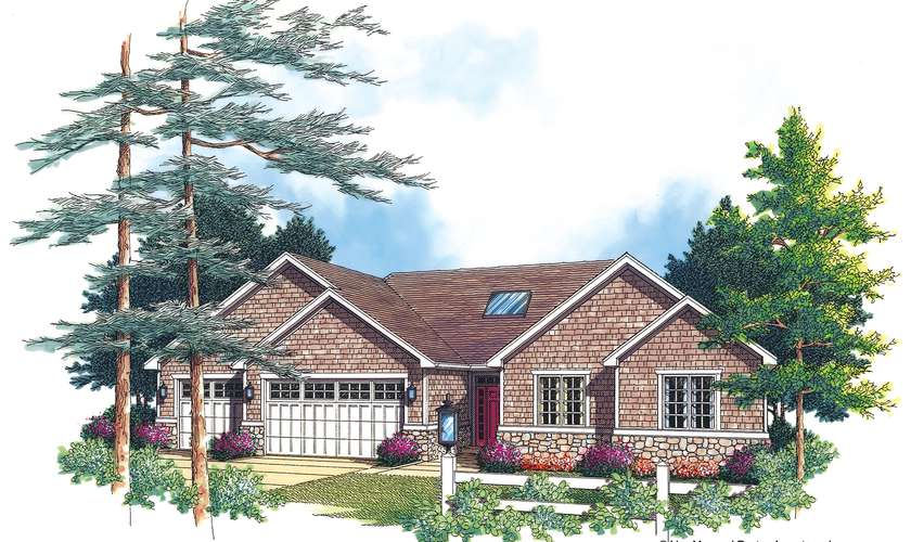 A classic combination of cedar shingles and stone give this home a delightful look. A skylight coupled with transoms cast light into the foyer, which leads directly into an open living area in the rear of the home. Functional for family life, the great room hosts a built in fireplace and media center. A hardwood floor discretely transitions into the kitchen and dining room while remaining open to the great room. A center island with a breakfast bar and a convenient third sink make the kitchen versatile. The dining room is tucked into a bay off the rear of the home with a patio door accessing the rear yard. Enter the private areas of the home directly through the foyer. A hallway to the right leads you to a master suite and two additional bedrooms. The spacious master bedroom has access to the rear yard with a patio door. A three-car garage completes this great home.