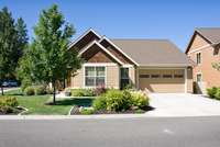 With a just-right size and perfect proportions, this home offers both practicality and personality. The traditional exterior features a mix of materials from cedar shingles to lap siding, with stone accents. The floor plan is flexible and offers both open living spaces and private areas. The covered entry gains access to a foyer leading to an office (or bedroom, if you prefer) on the right and the great room and dining room at the back. Choose built-ins or a closet in the office, depending on how you choose to use it. The great room is vaulted and has a gas fireplace for extra coziness. The kitchen has an island with a dining counter and is open to the dining area, which has sliding doors to a porch and patio beyond. A walk-in pantry is located nearby for convenience. Three bedrooms align the left side of the plan - two family bedrooms and a master suite. Bedrooms 2 and 3 share a full hall bath; the vaulted master bedroom has a private bath with spa tub and separate shower. Reach the garage via the laundry room - there is space there for as many as three vehicles.