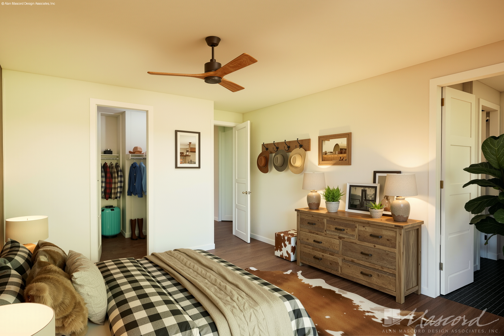 The Prairie Pine utilizes a sophisticated split-bedroom layout to ensure every member of the household has a place to retreat. The primary suite is a true getaway, featuring an oversized footprint and a genius design choice: the laundry utility room is located on the same level as the master, making daily chores nearly effortless.