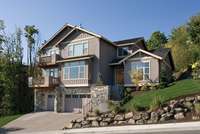 Families who love the outdoors will love this multi-level, hillside home. Two front decks beckon all to relax in the fresh air. (Both decks feature a closet for stowing outdoor furniture.) A wealth of windows open every room to light and the view. Patio doors in the breakfast nook offer easy access to the back yard. There's plenty of room to roam or gather the gang in the open spaces of the first floor. A step up from the front entry, the commanding family room features a window seat that invites family members to laze in the sun. Both the family room and den are warmed by a two-sided fireplace. Across the hall, the kitchen offers work centers for a family of cooks. The angular island is fitted with a self-venting cooktop and a sit-down snack counter. Formal rooms - the dining room and parlor - make entertaining a delight. Seeking solitude? Withdraw to the second floor. Elegant double doors open the master suite, which includes a vaulted bedroom that's large enough to accommodate a cozy sitting area. This private retreat also boasts a deck, a walk-in closet, and a bath built for two. The bath is furnished with a double-sink vanity, shower, and a whirlpool tub in a windowed alcove. In the hall, a gallery with a half-wall overlooks the family room.