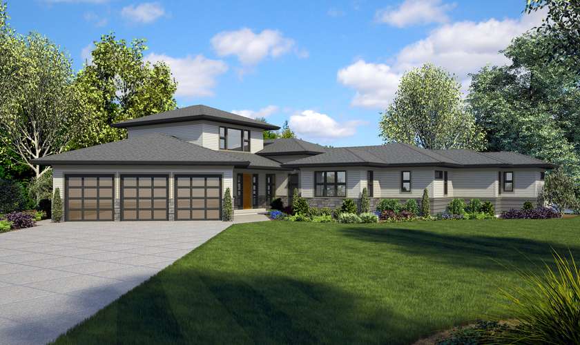 Modern Prairie homes are characterized by their horizontal lines, low-pitched roofs, and integration with the surrounding landscape. They often have wide, overhanging eaves, and may incorporate elements such as cantilevered balconies and large windows to bring in natural light. In modern versions of the style, materials such as glass, steel, and concrete may be used alongside traditional wood and brick. Modern prairie style homes often emphasize open, flowing floor plans and a connection to nature.