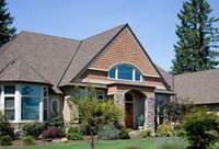 Scaled just right for luxury living, this 1 1/2-story shingle-style home has exterior details that delight. A main palette of cedar shingles on the facade is accented by stonework at the foundation line. A quaint turret on the right adds interest. The entry features four columns supporting a faux balcony and protecting the double French doors and transom. The main body of the plan is contained on the first level and revolves around a wide central hall that widens to become the great room. A dining room with decorative ceiling and a den with beam ceiling flank the hall. The great room is massive and appointed with a fireplace, built-ins and double doors to the rear porch. The kitchen is a gourmet's dream. It has a butler's pantry connecting to the formal dining room, a walk-in pantry and a vaulted nook overlooking the back porch. A short hall leads to Bedroom 3, with full bath, the laundry room and the three-car garage. At the opposite end of the home, the master suite sports royal details. A bow window and elegant ceiling grace the bedroom. The bath contains two walk-in closets, a tiled shower, a spa tub and French doors to the porch. An additional bedroom, with its own bath, sits just across the hall. The upper level holds a surprise: a vaulted media center off a skylit hall at the top of the stairs