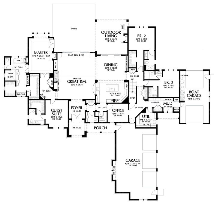 Perhaps it is the weekend and you’d rather spend your day relaxing and enjoying your surroundings. While away the afternoon in the vaulted great room, enjoying the sparkling waves through floor-to-ceiling windows. Or, perhaps a better idea is to spend the day out on the lake. The Williamson features an extended garage with a rear vehicle entry, designed as an ideal place to store a boat and trailer — a necessity if you plan to live by the ocean or on the banks of a lake.