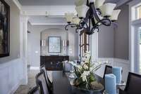 The dining room will be invaluable for formal occasions. This room opens into a butler’s pantry that leads to the kitchen, which gives you a place to stage each course of a meal. When the dinner is over, use the butler’s pantry to remove dishes quickly and easily without making several treks back and forth between the kitchen.