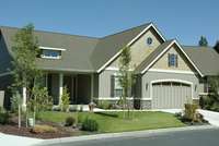 Just because a design is reserved to a single floor, it need not be boxy or plain. This design is ample proof. Not only does its exterior appeal with thoughtful appointments, its interior is spacious and well laid out. A central foyer connects the rooms: a den, the kitchen/nook, the great room and the bedrooms. Both the master suite and the great room are vaulted. The great room features decorative columns, a fireplace and a media center. The dining area has sliding glass doors to a rear patio. A pantry with built-in shelves serves the kitchen. The den can be designed with a closet or a built-in desk, as you prefer. Bedroom 2 has both a window seat and a built-in bookcase. The two-car garage contains a large shop area. Don't overlook the master bath, where a spa tub waits to pamper.