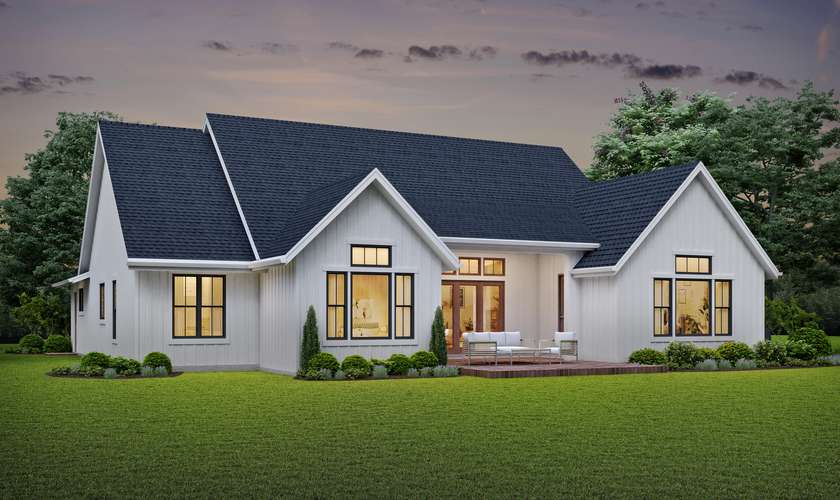 This home features in our Farmhouse plans collection. Farmhouse is a general term for the main house of a farm. It is a type of building or house which serves a residential purpose in a rural or agricultural setting. Most often, the surrounding environment will be a farm. Many farm houses are shaped like a T. The perpendicular section is referred to as the ell. Architectural styles vary, but very often they are of Cape Cod design. In general styles vary from region to region, but more often the style is simplistic so to serve the needs (and the budget) of the owners.